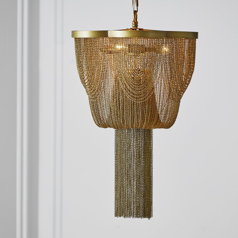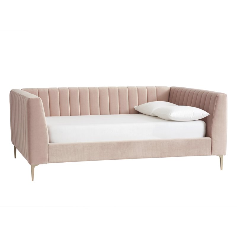 New pieces for PB Teen include a channel tufted daybed and a glam ceiling fixture swathed in fine chain. At CB2, find champagne-hued velvet barstools, a shapely velvet sofa and faux-shagreen casegoods. West Elm’s got Rosanna Ceravolo’s linear, carved media console, in a crisp citron hue.