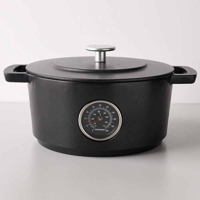 The Museum of Modern Art’s gift shop has a cast-iron item this season: the Railway Dutch Oven, made in Holland out of recycled iron railway ties. A built-in thermometer helps monitor cooking progress, and the tool can be used stovetop or oven.