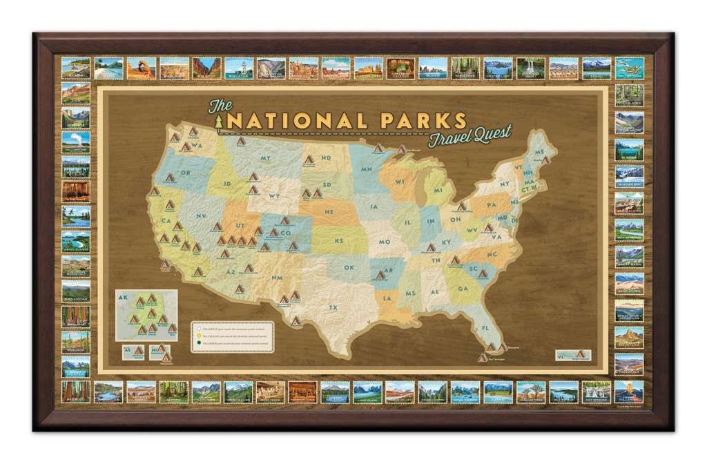 Map Your Travels, in St. Louis Park, Minnesota, has some options. One of its maps shows all the national parks, with pins to chart your visits.“We had one family who had kept track of all the parks they’d visited together over the years, and then gave a map to each of their five kids, so the next generation could map their national park visits,” said Nancy Spangrud of Map Your Travels.