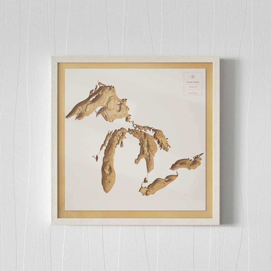 His studio, Pangea Maps, makes topographic maps of coastlines and lakes throughout North America and Australia, as well as custom maps of any seascape or lakeside locale. (www.pangeamaps.com )