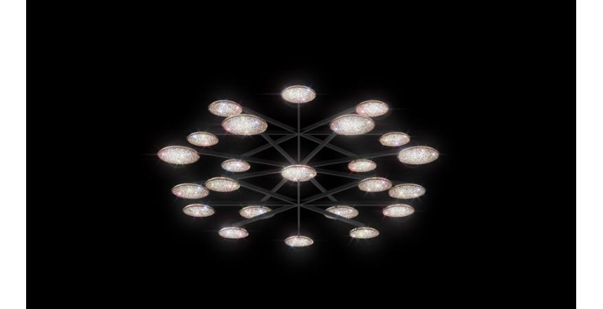 Hungarian firm Manooi used Swarovski crystals to great effect, in swirling, exploding, and linear chandeliers.