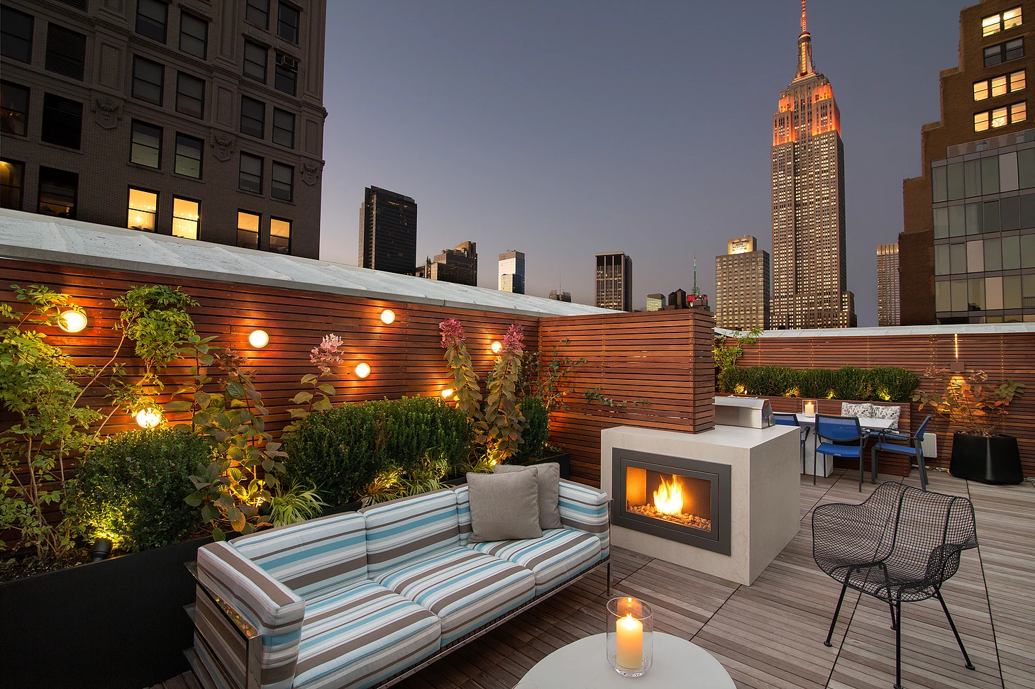 Everyone’s perception of privacy is unique, so we take direction from the client. There are building and code restrictions, like a max 6-foot fence. When a fence isn’t the answer, tall planters with boxwood or arborvitae make an effective screen. You’ve got some very substantial planters on the West Village terrace.