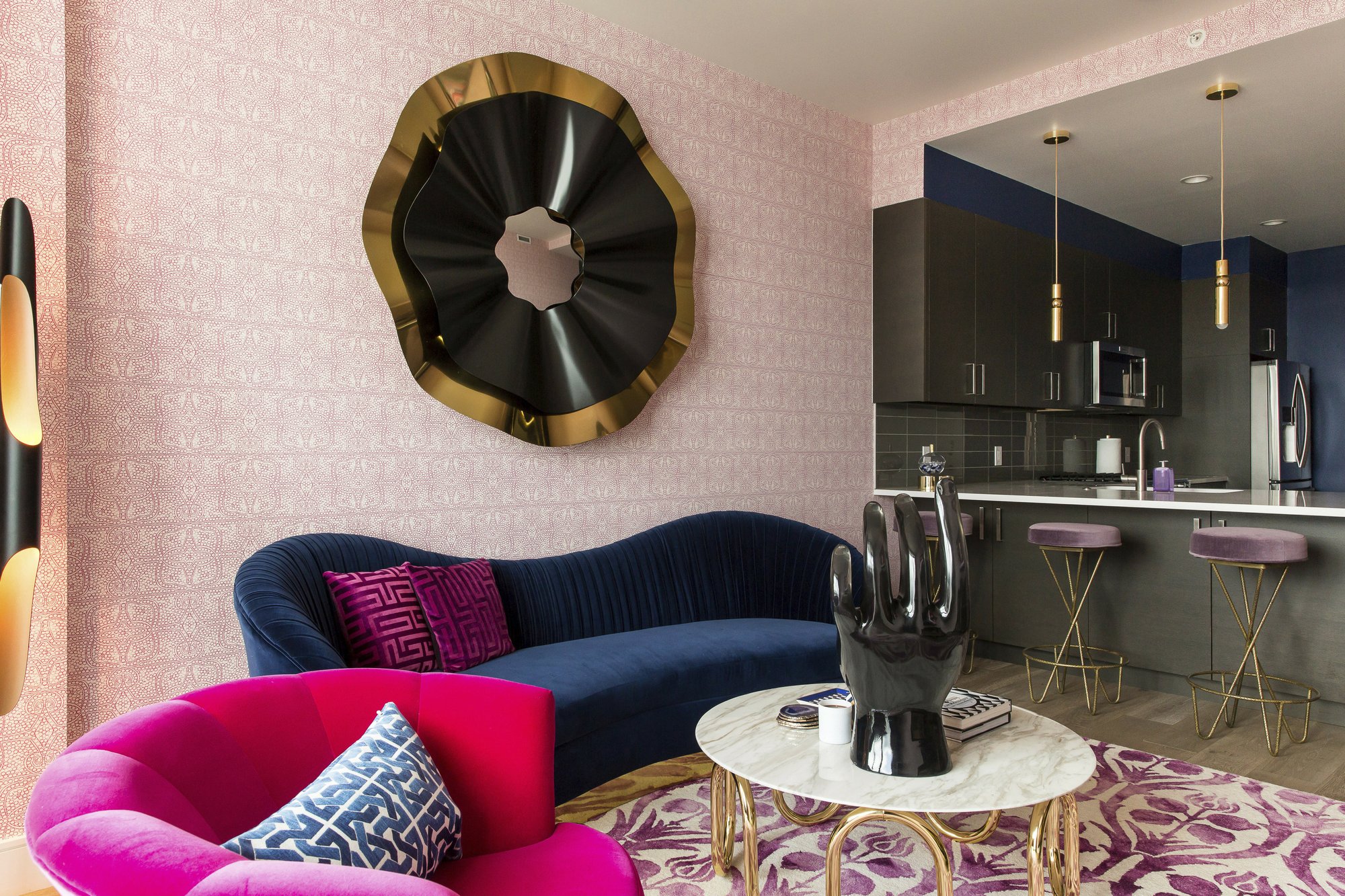 Maureen Stevens, an interior designer in Austin, Texas, seeks a similar balance. For a project in the city’s Seaholm District, “the client wanted a boutique-hotel vibe with all the frills.” Stevens clad some walls in cobalt and magenta, and then dressed the home with bold pops of pattern, curvy furniture, statement art, and velvet bar stools perched on hairpin legs. There’s sex appeal, but it’s infused with tasteful, thoughtful curation.