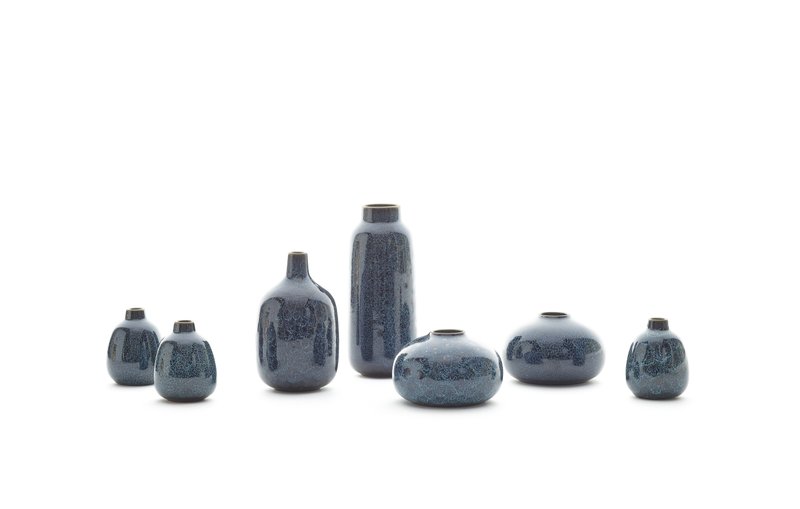 Health Ceramics , a studio in Sausalito, California, has a new glaze — Cosmos — that evokes deep space and star-filled galaxies for a vase collection. The swirling mixture of dark and light blues and glossy black create the effect.