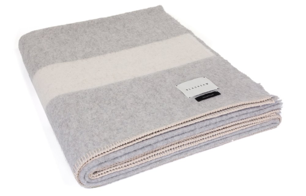 Leftover alpaca, cotton and wool scraps are re-spun into cream and black camp-style blankets at Blacksaw. These hardworking heritage pieces could also be hung on a wall as artwork.