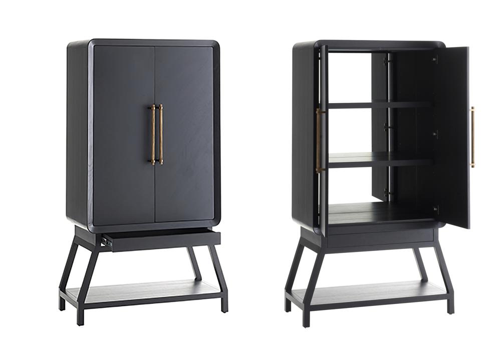 Jeffers is mindful of multifunctionality when designing a cabinet: The Cantu piece, for example, has shelves that can be removed to store clothing. And he loves using it as a bar cabinet for entertaining.
