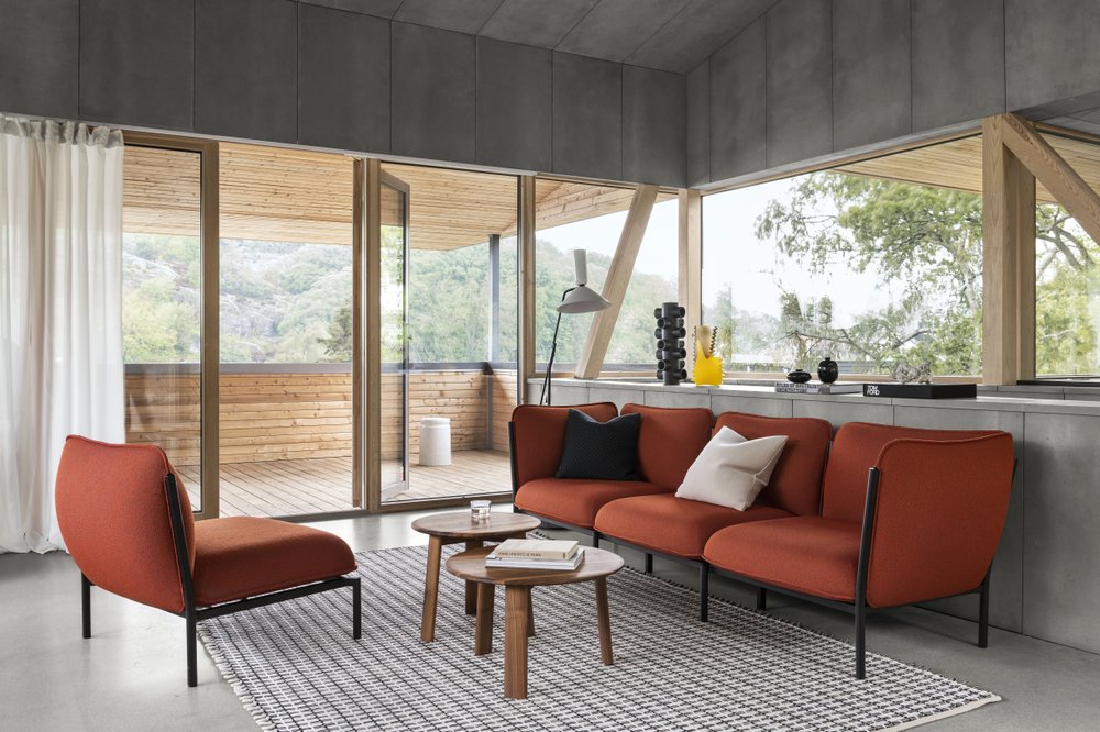 Hem’s Kumo modular sofa system from Norwegian design team Anderssen & Voll is offered in a fiery, rust-hued wool they call Canyon.