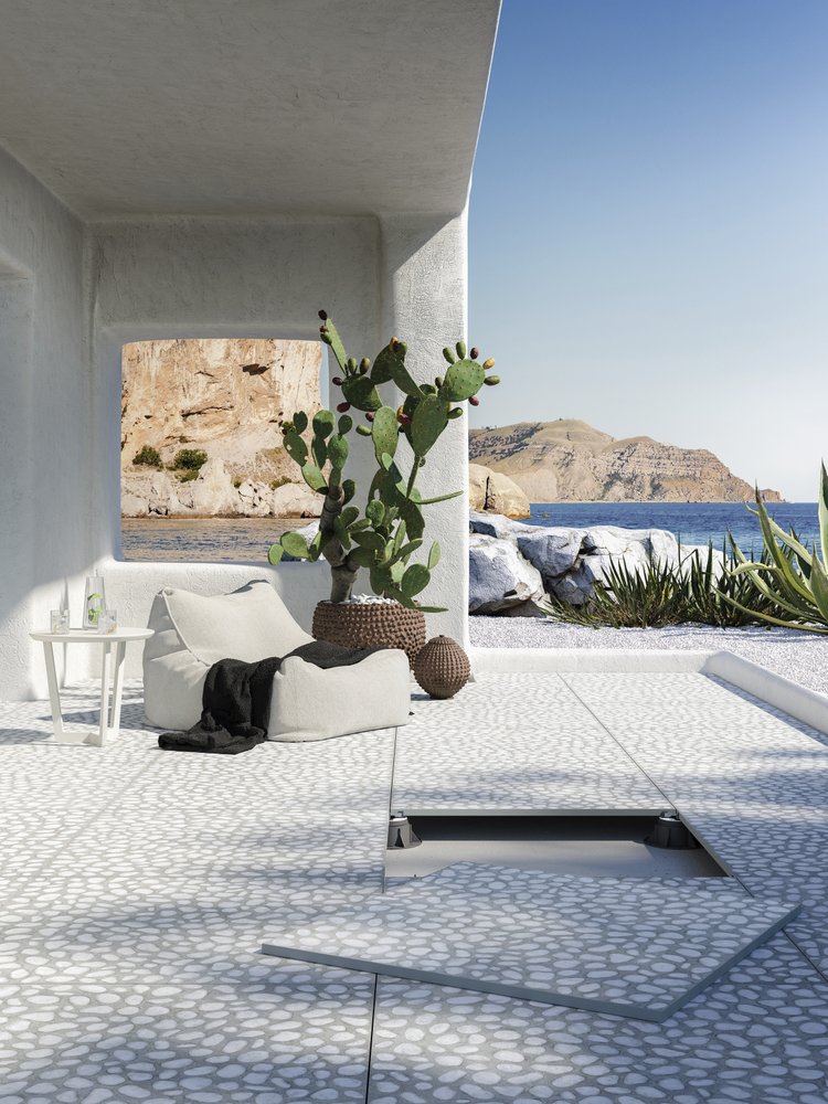 Another Italian tile maker, Refin, offers Risseu, a collection of porcelain stoneware tiles inspired by Genoa’s historic, cobbled courtyards and city gardens.
