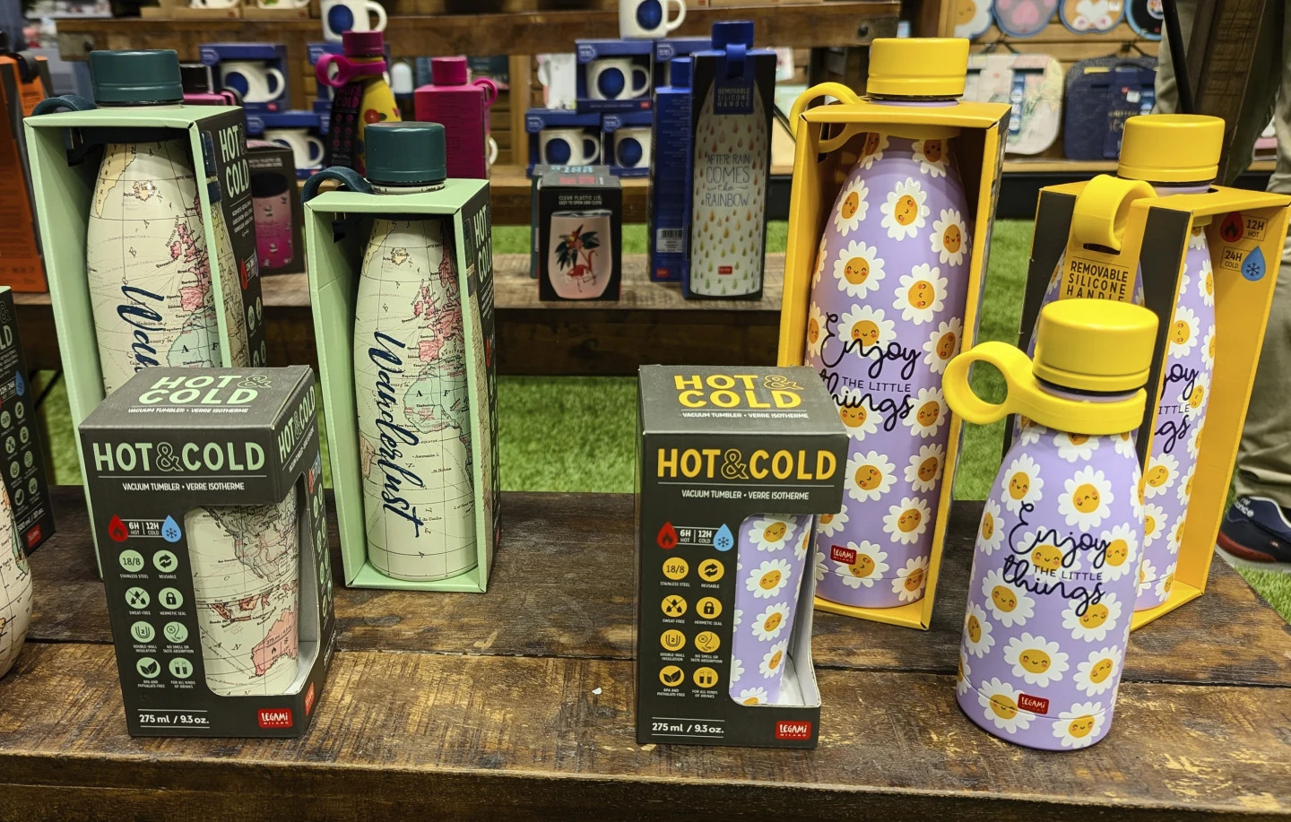 Hundreds of plastic and bioplastic versions from various makers have been joined over the decades by stainless steel and aluminum versions, with as many iterations of the lids – straws, screw-ons, flip-ups.