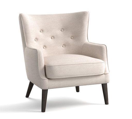 Pottery Barn’s Hayes wing chair, for example, has a barrel-curved back and low-profile arms, so you can tuck your feet up. Leather hues include caramel, forest green, midnight and berry red. The smaller-scaled Manning chair, in a cream-hued fabric, sports chic contemporary button tufting; it’d be a nice choice for a master bedroom.